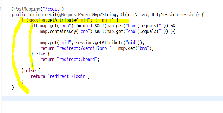 로그인 실패하면 로그인화면으로, bno&cno 값이 없다면 보드화면으로 보낸다.