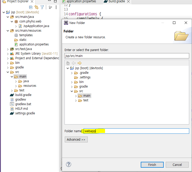 src 아래에 webapp 폴더 생성