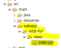 그 아래에 WEB-INF 폴더 & views 폴더 & index.jsp 파일까지 생성