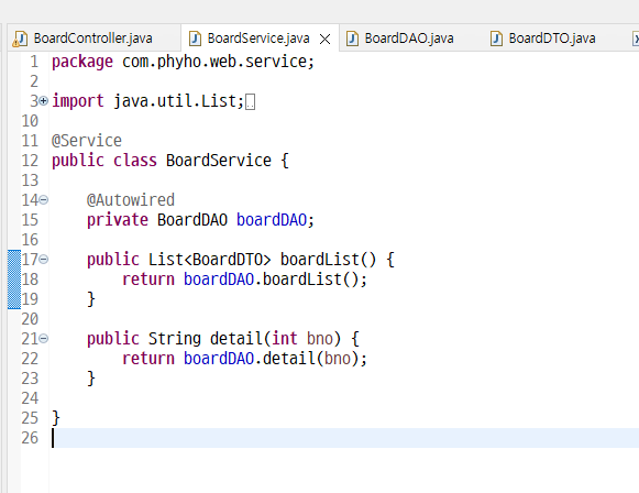스프링부트에서는 클래스명만 적어도 BoardDTO를 알아서 잘 찾아간다.