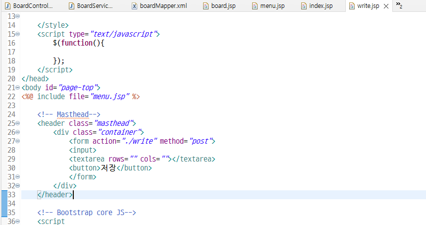 board.jsp에서 글쓰기버튼에 onclick으로 write.jsp 로 보내는기능 넣어준다.