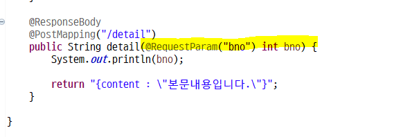 메소드 내부에서 bno를 잡아오는 방식으로 아래처럼 string타입의 bno 변수에 저장해서 사용했었다.