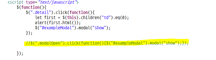 모달의 title에다가 this(detail = tr의 클래스)의 자식들(td들)중에 인덱스가 1인 (두번째td) 요소의 텍스트를 넣어준다.