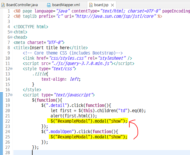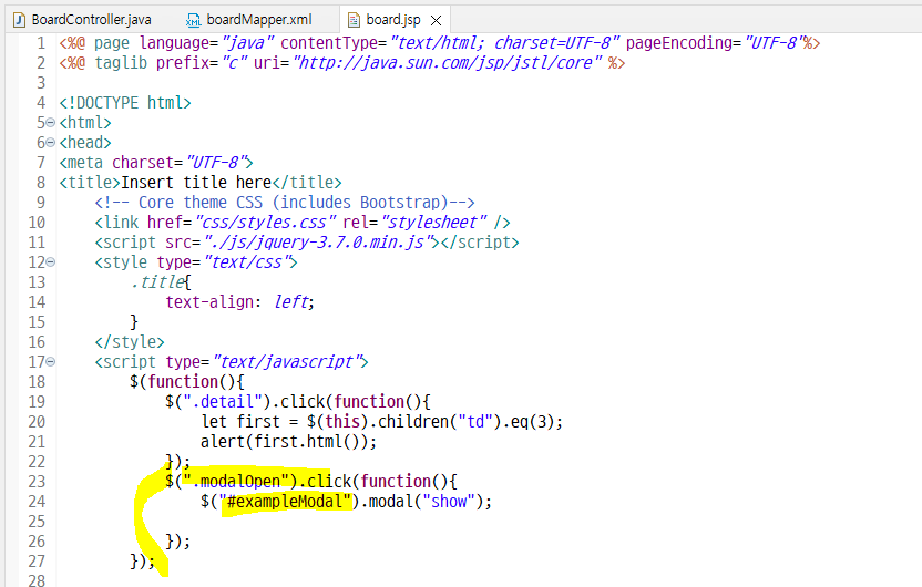 글의 btitle을 불러와 모달title에 넣어줄건데