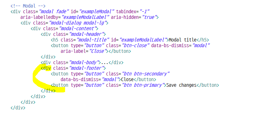 모달코드부분에서 아래부분(modal-footer) 삭제