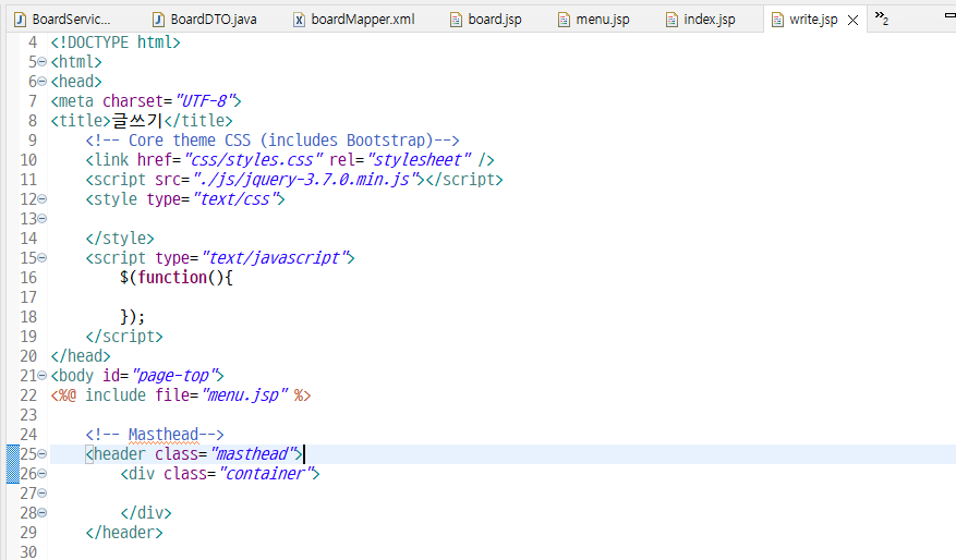 write.jsp 생성하고 기본 뼈대만 남긴다.