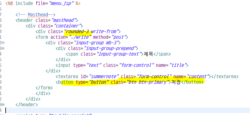 form 태그로 글쓰기창 & 버튼 만들어준다.