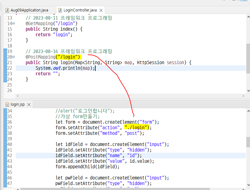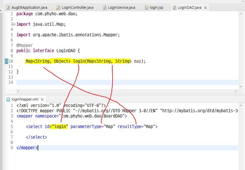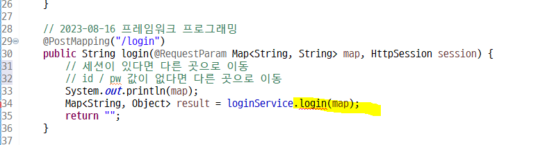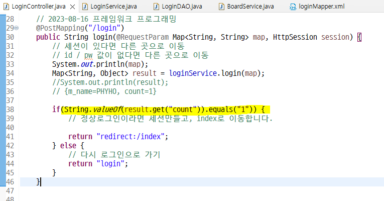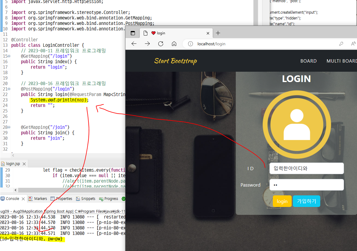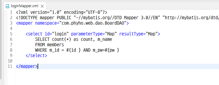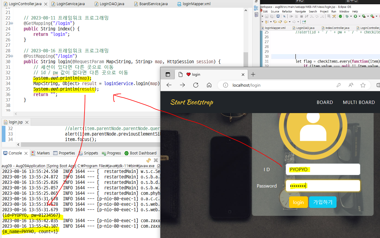입력한 id / pw 를 map에 담아서 db로 가져간 후 같은값이 있는지 비교한다.