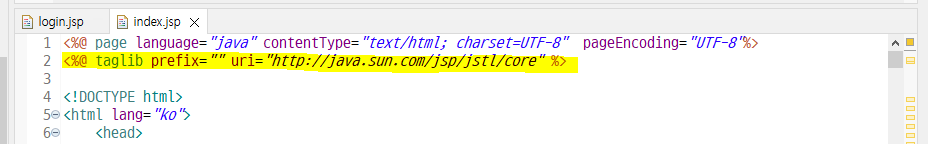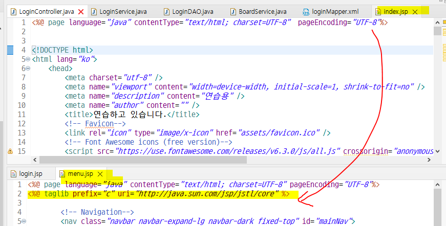이때 index.jsp에 있던 core 선언을 menu에 넣어주면 모든 jsp에 넣어줄 필요가 없다.