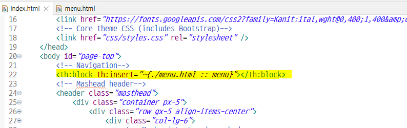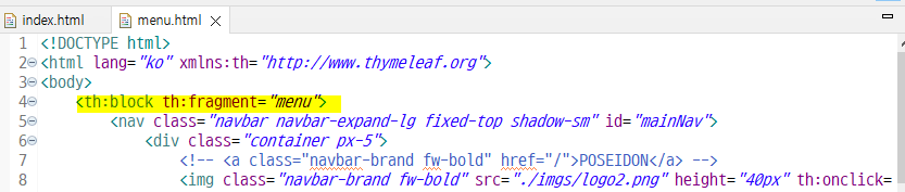 menu.html의 menu라는 이름을 가져오라고 아래처럼 해주면