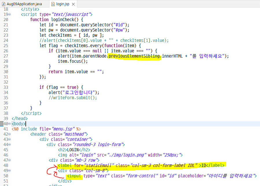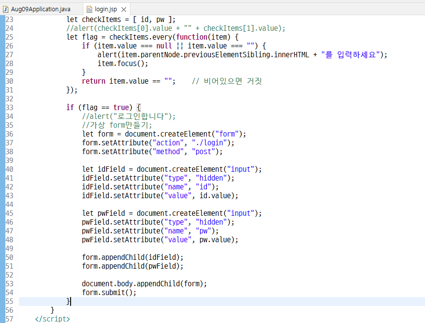 item의 value값이 null이거나 공백이라면 (입력한 id와 pw값이 없다면)