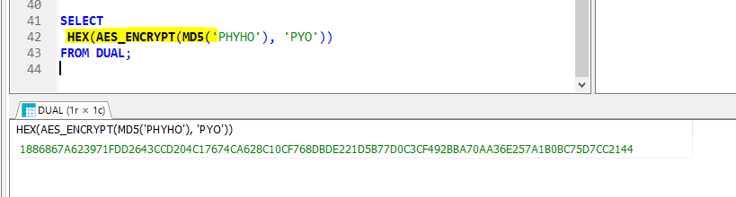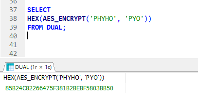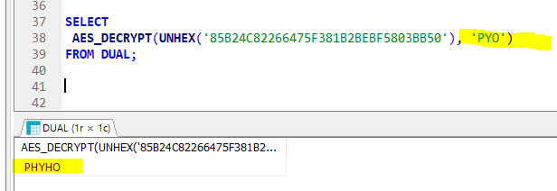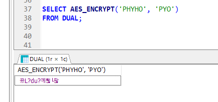 반대로 UNHEX 화 시켜보자 (이때 위에서 암호화할때 정해준 key값이 필요하다)