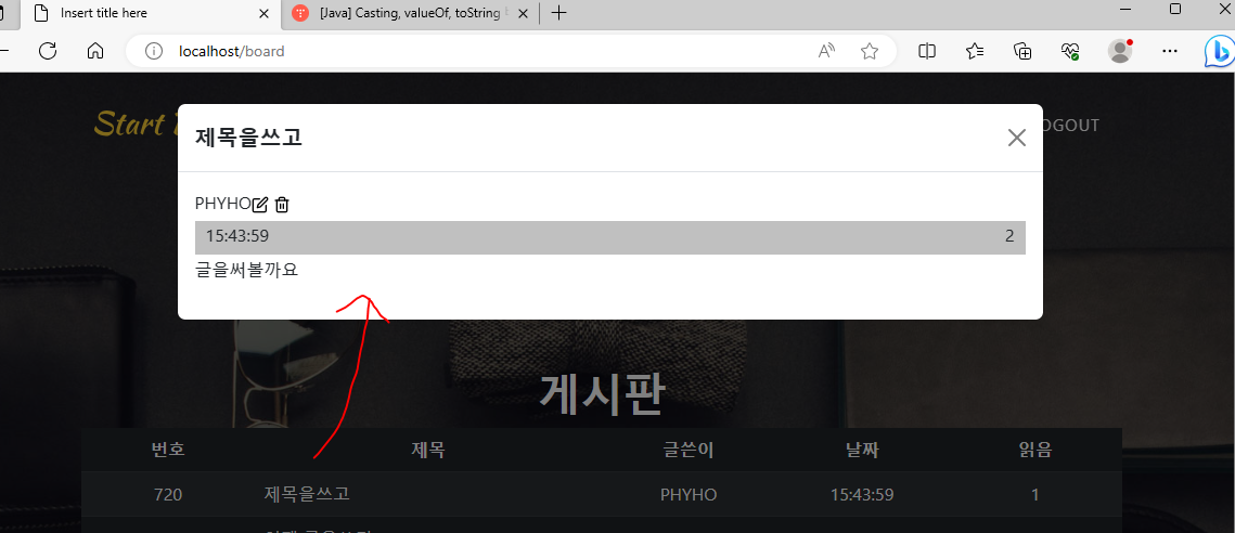 | 20230810 _[49일차]_01. 스프링부트 모달창띄우기 & 글쓰기창 (0) | 2023.08.11 |