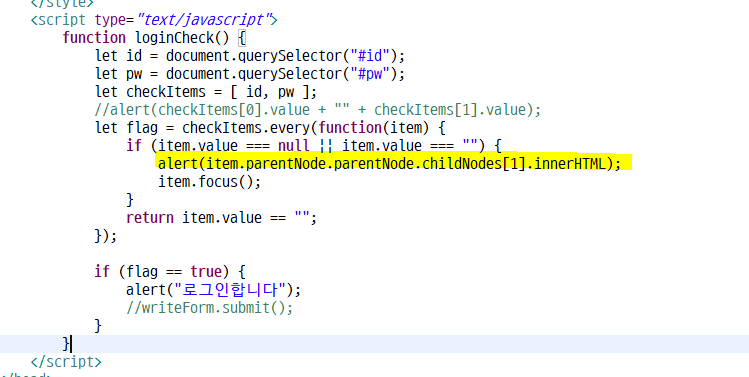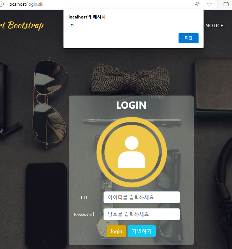 id와 pw 입력값이 없을떄 팝업을 띄울예정.
