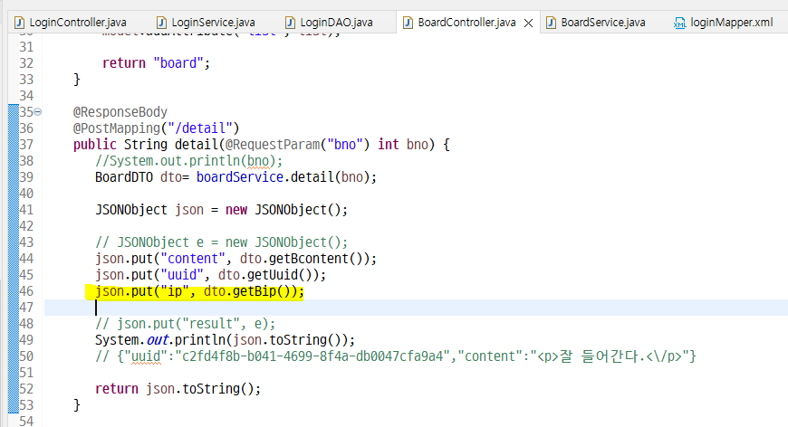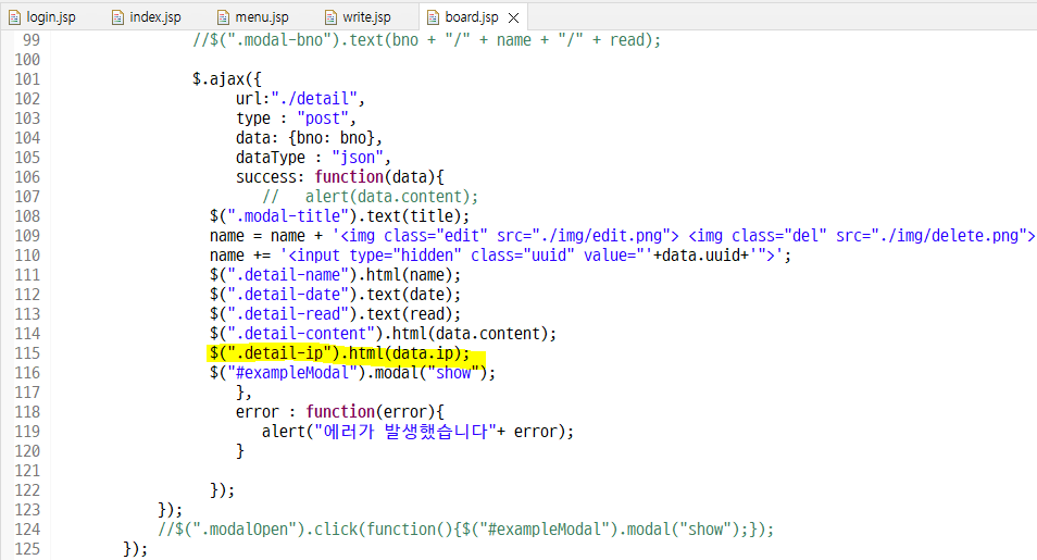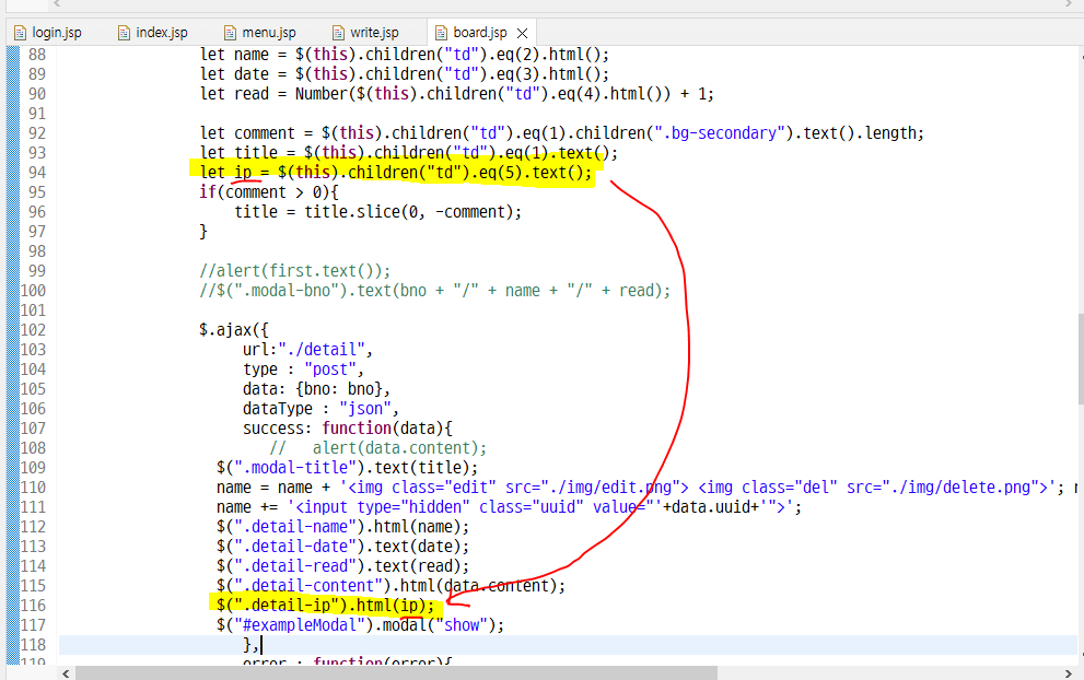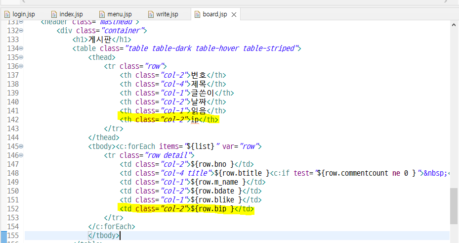 불러온 ip 가 들어갈 자리를 board.jsp에도 추가해준다.