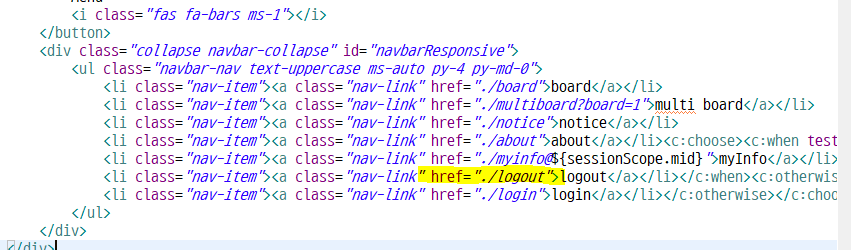 메뉴바의 logout을 누르면 ( "./logout" 으로 이동하도록 menu.jsp에서 설정해줬다)
