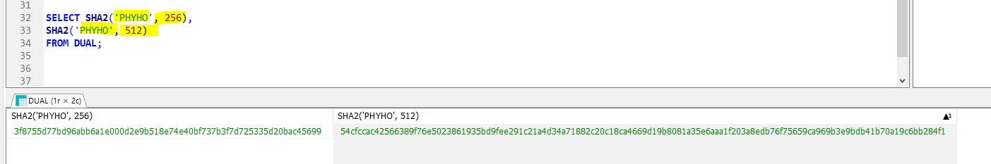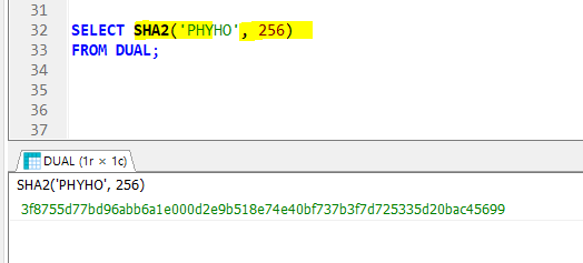 SHA2 로 암호화 시켜주면 내가 정해준 길이만큼(195부터 시작)