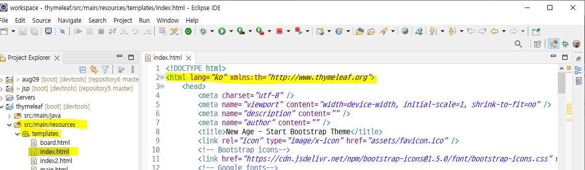 thymeleaf는 html파일로 jsp와 다르게 vscode로도 작업가능