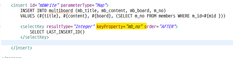 이제 쿼리문에 selectKey 명령을 추가해줄거다.