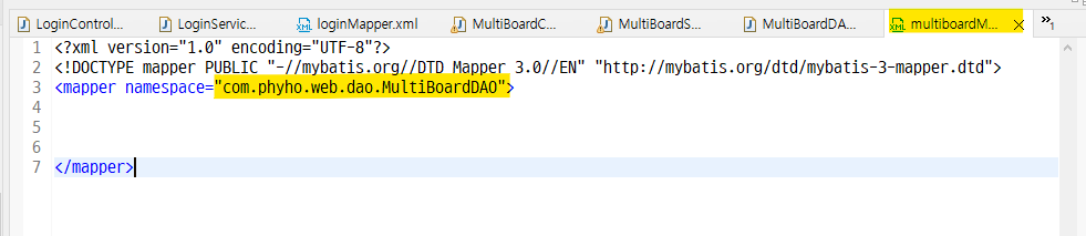 MultiBoardMapper 도 생성하고 MultiBoardDAO 와 연결