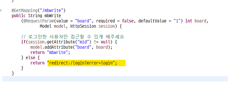 멀티보드에서 글쓰기를 누르면 로그인창으로 넘어가면서 주소창에 error가 표시되도록 해준거다.