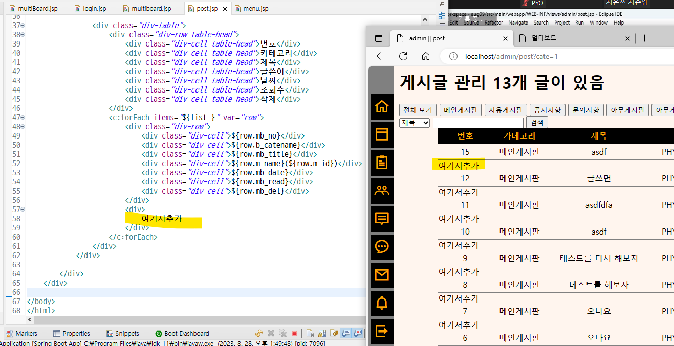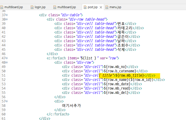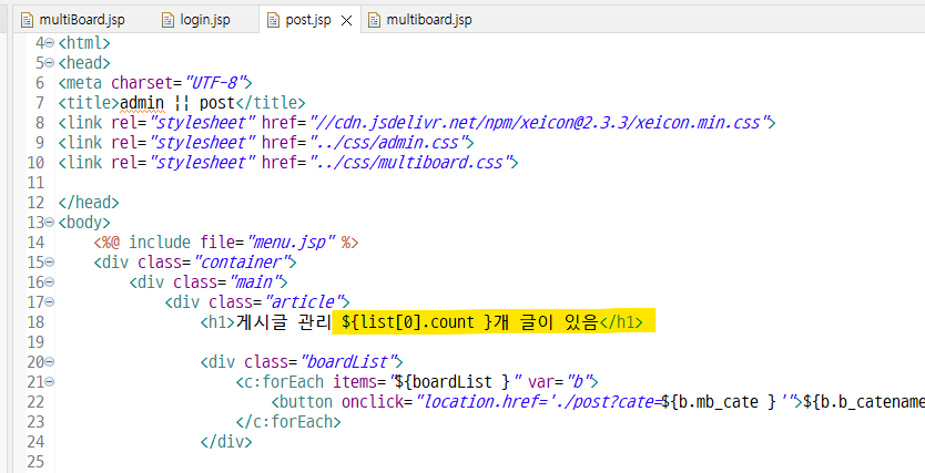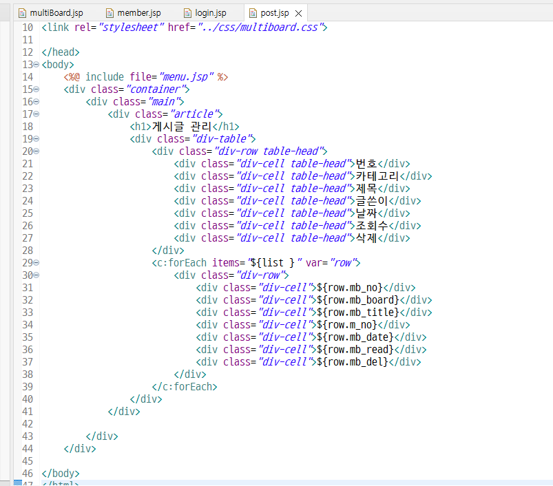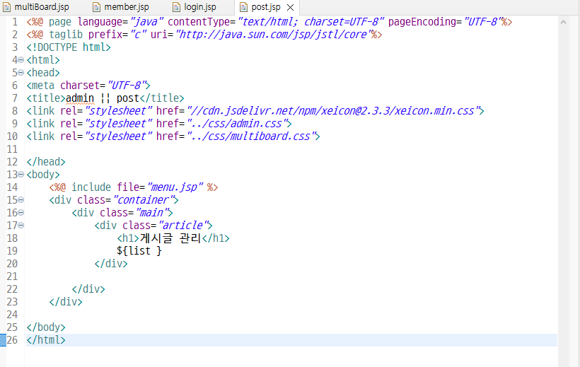 이제 post.jsp 만들고 데이터 잘 불러오는지 띄워본다.