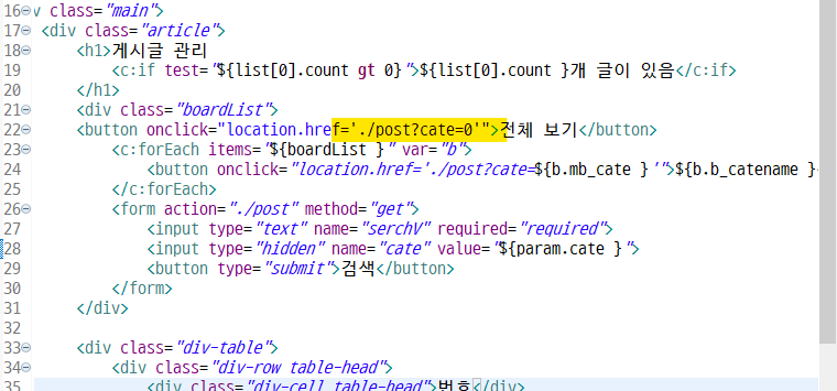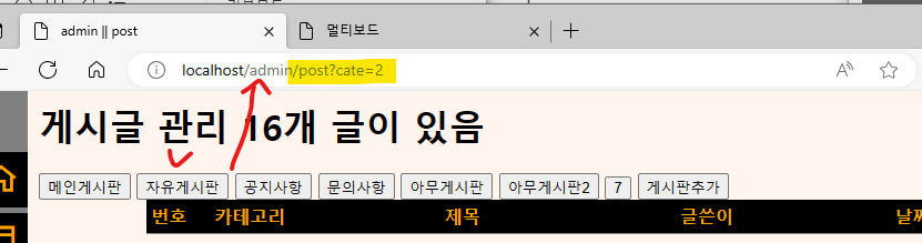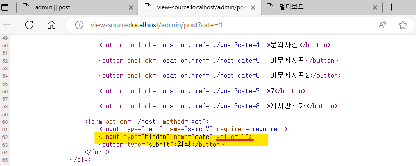 메인게시판 누르고 (cate = 1일때) 소스보기 눌러서 확인해보면