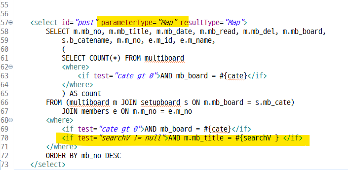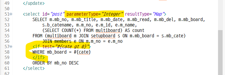 그런데 if 조건문도 걸어줘야 한다. parameterType도 추가해준다.