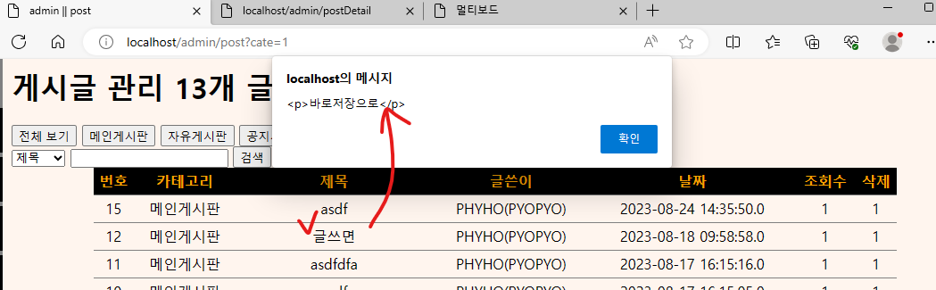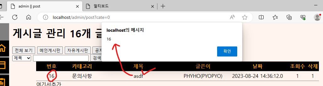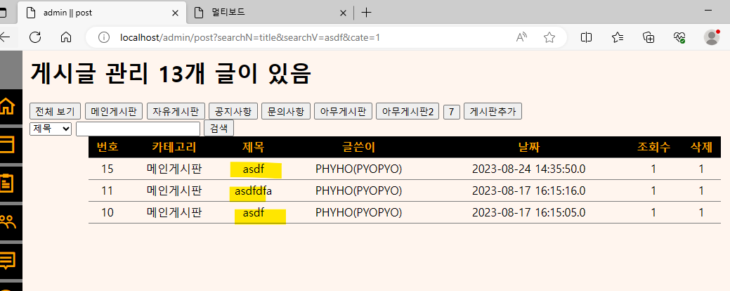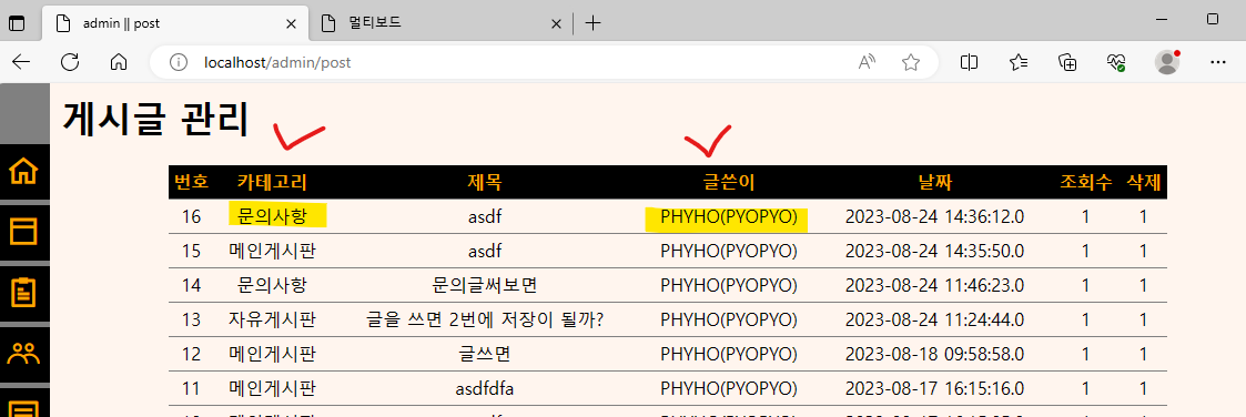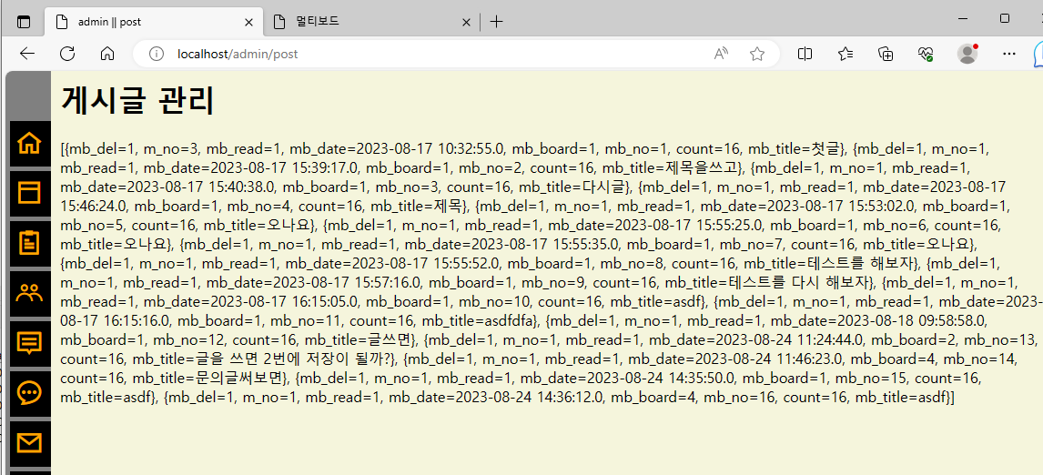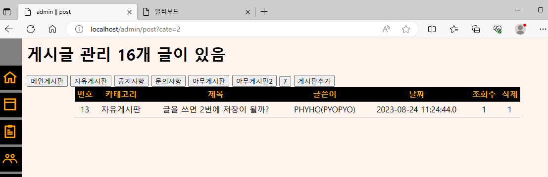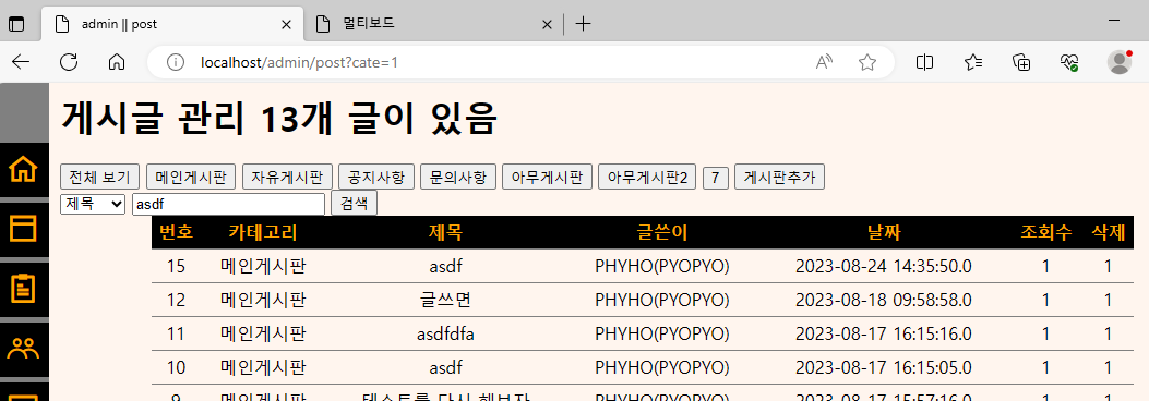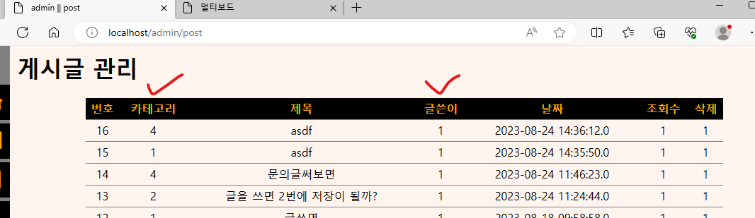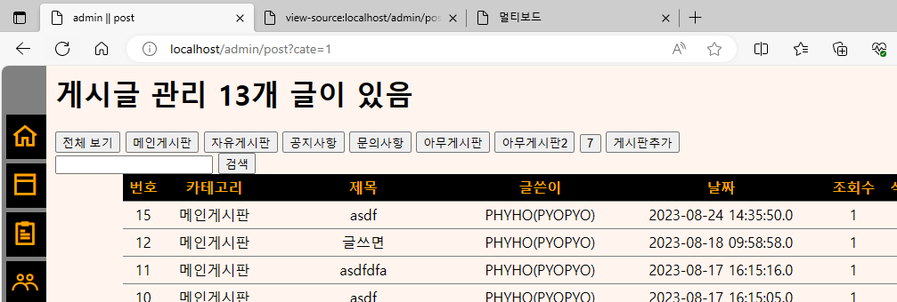 아래의 일반게시판의 모든 글들을 관리자페이지인 admin/post페이지로 불러올거다.