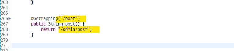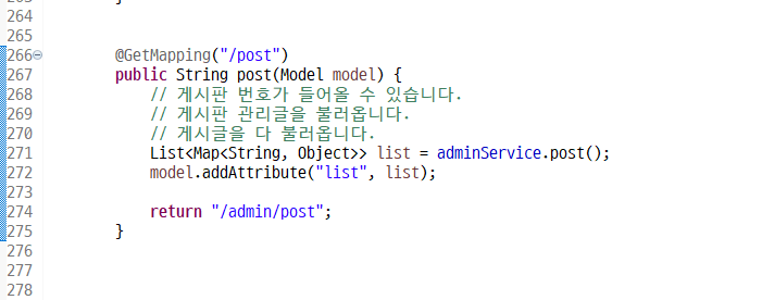 AdminController에 post 요청에 대해 admin/post를 반환하는 코드 작성