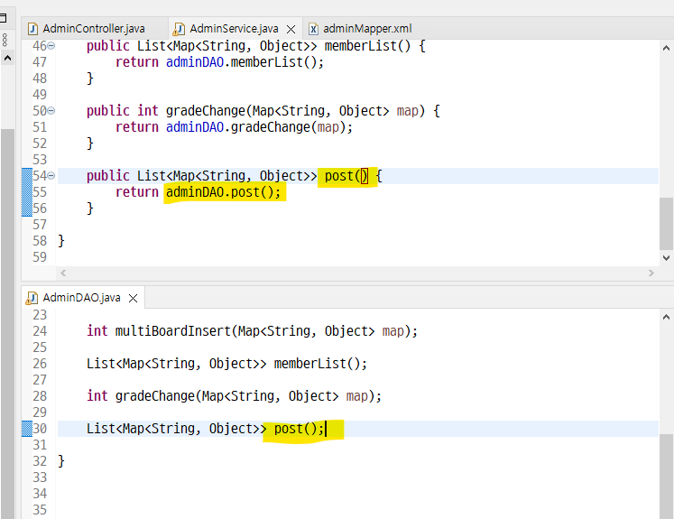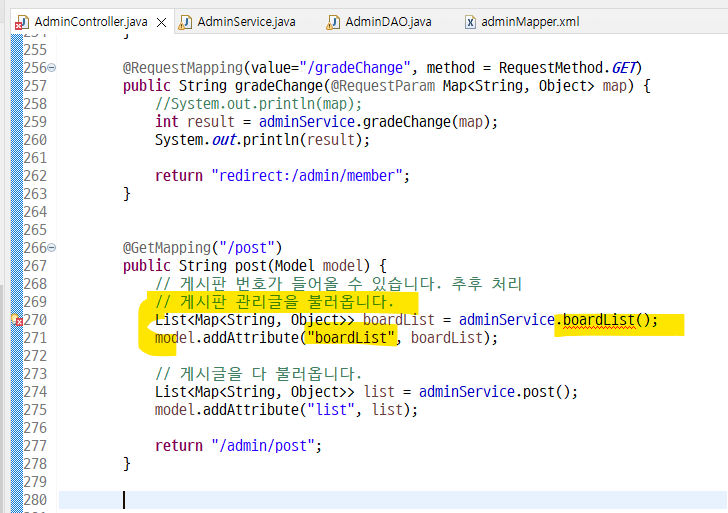 컨트롤러부터 서비스, DAO, mapper 까지 전부 매개변수를 수정해준다.