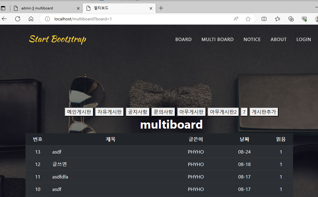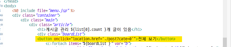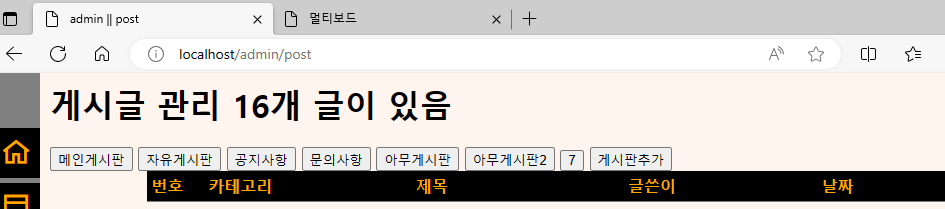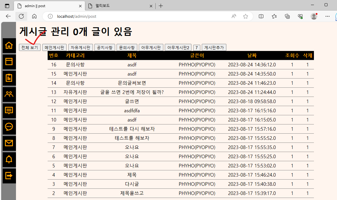 그래서 전체보기 버튼을 하나 만들어줬다. (주소창에 뜨는 게시판번호는 0으로 설정해줬다.)