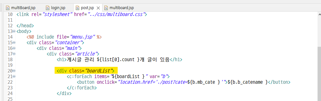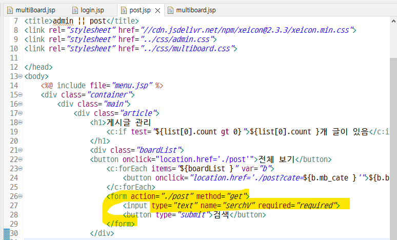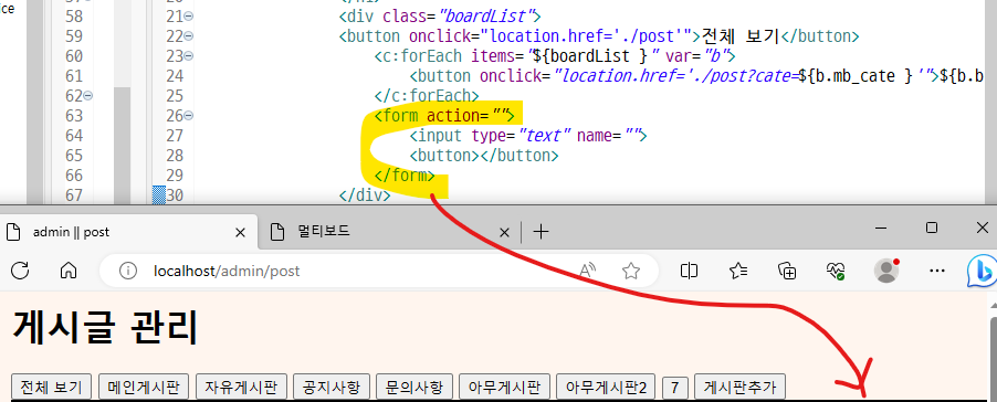 multiboard 게시판에 있는 버튼들을 게시글 관리 페이지에도 넣어주고 url 연결해준다.