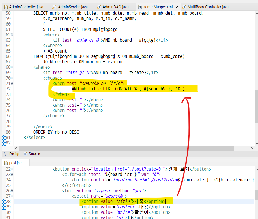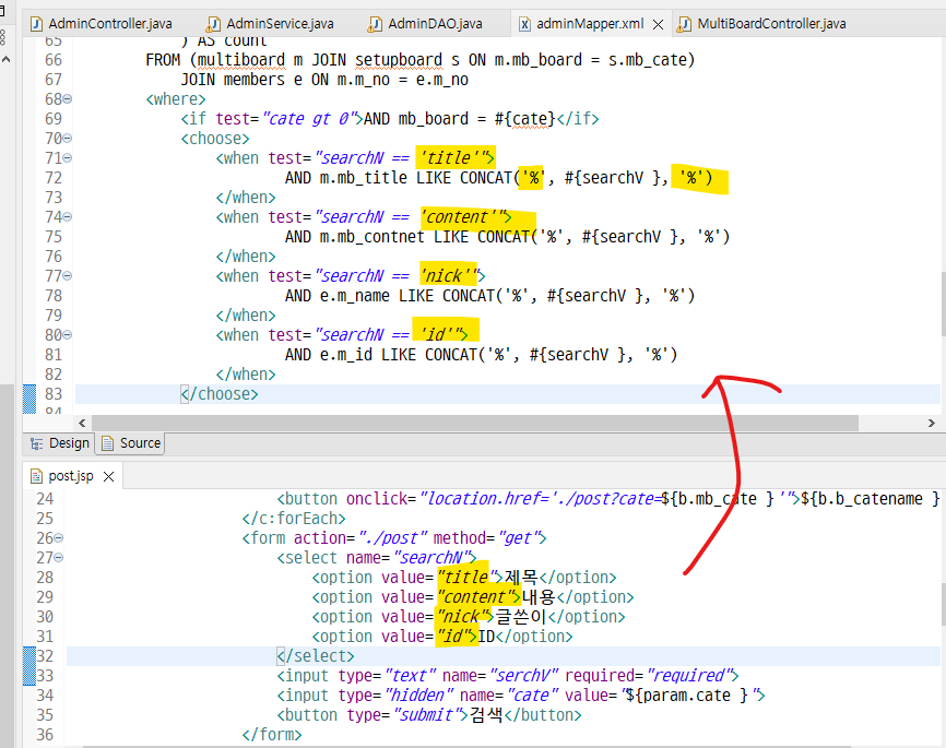서비스랑 DAO도 수정해주고 mapper에서 조건 where절 추가