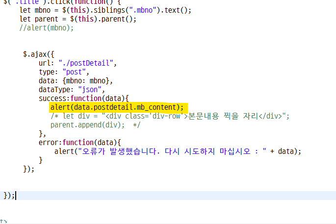 일단 title을 클릭하면 mbno를 잡아오는 jquery 먼저 만들어보자.