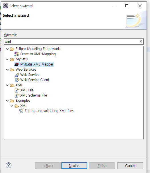 mybatis 도 패키지랑 xml 파일 연결해준다.