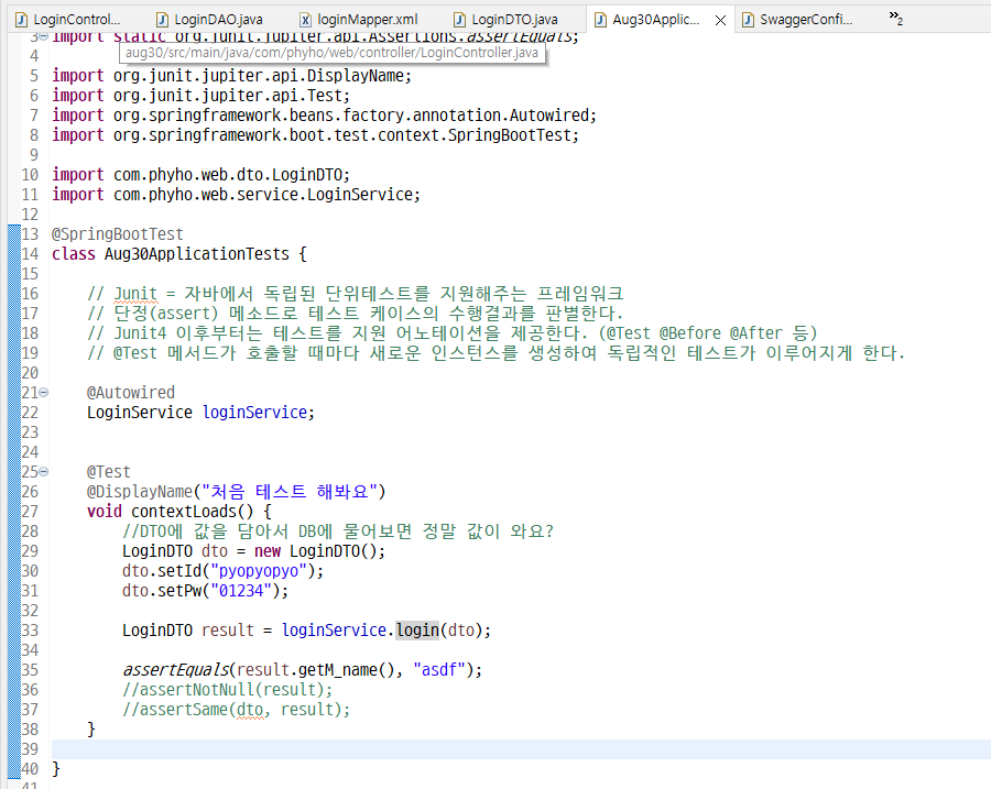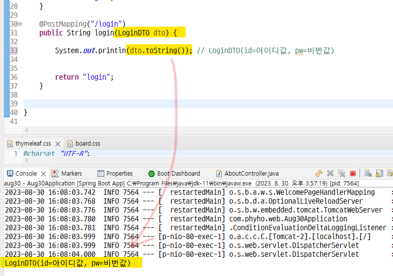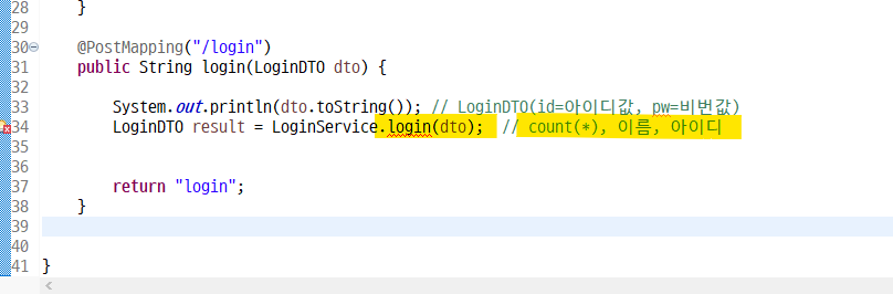 이제 이 dto를 가지고 login() 메소드를 실행시켜서