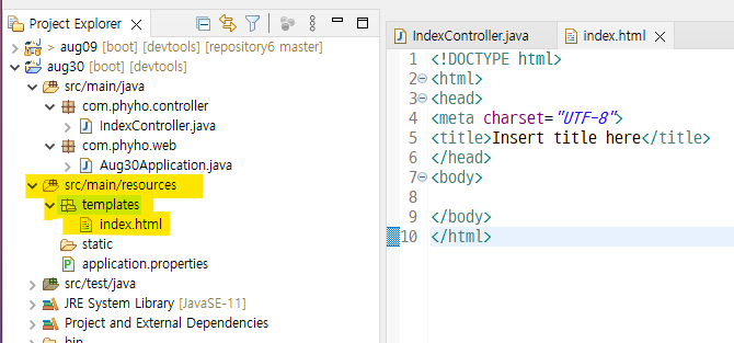 이 주소로 이동하면 컨트롤러에서 설정해준대로 내 패키지를 읽어온다.