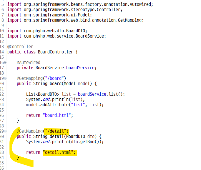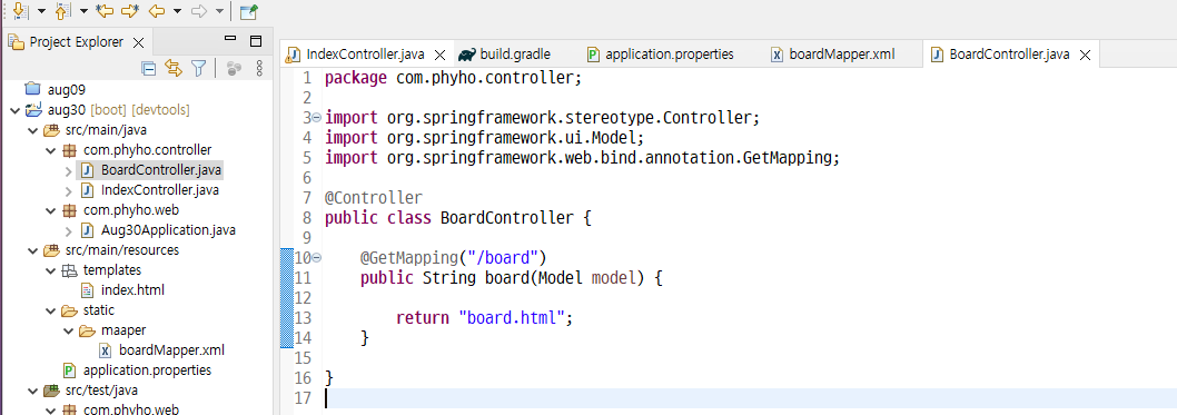BoardController 먼저 만들고 (board 요청에 대해 board.html 반환)