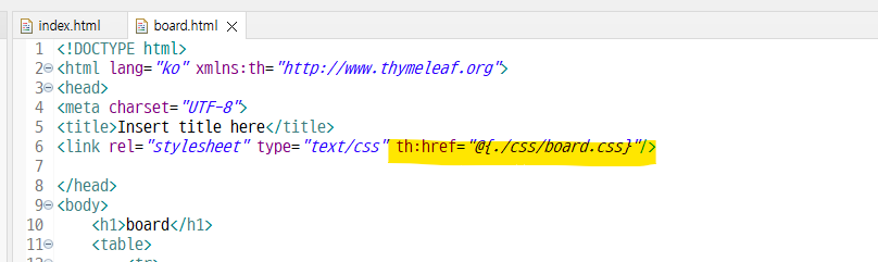 css연결해준다. thymeleaf 문법을 사용해서 연결해줬으니 th를 꼭 써줘야한다!!!