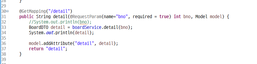 이제 컨트롤러에 detail로 가는 로직 만든다.