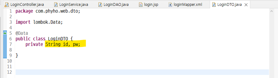 mapper에서 가져오려고 적어준 데이터들을 int / String 타입으로 나눠서 DTO에 담아준다.