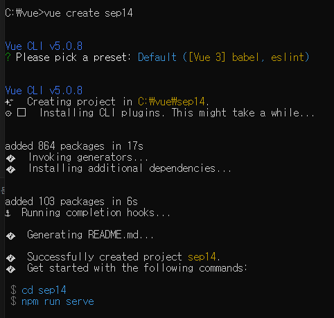cmd에서 새로운 프로젝트 sep14 생성해준다.