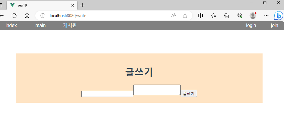 views 폴더 아래에 WritePage.vue 파일 만들어주고 index.js에서 연결해준다.