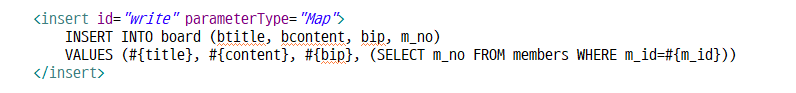 서브쿼리문으로 m_id와 일치하는 m_no를 뽑아내서 넣어준다.