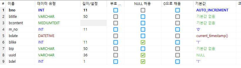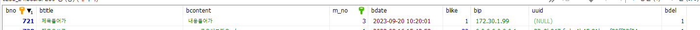 기본값 설정되어 있는 필드 외에는 m_no, bip 만 넣어주면 된다.