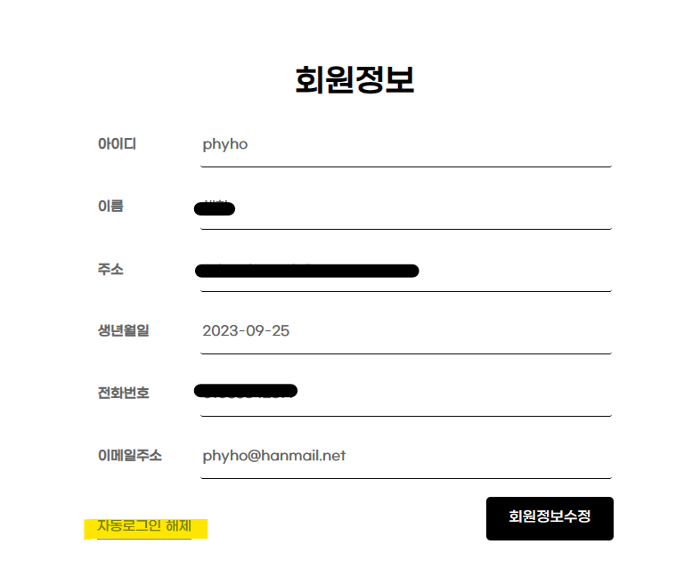 userinfo.jsp 페이지에 자동로그인 해제 버튼을 따로 만들었다.