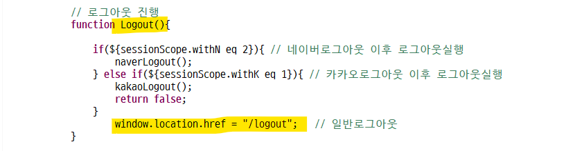 컨트롤러에서 일반 로그아웃 처리가 된다. (세션무효화)