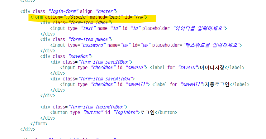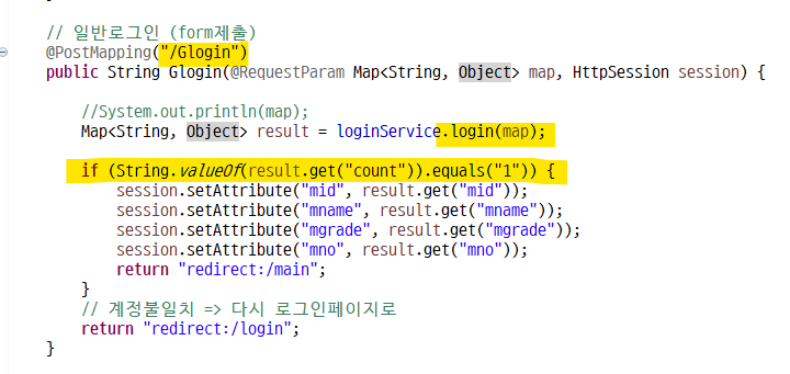 form이 제출되면 컨트롤러에서 post방식의 /Glogin요청을 받는다.