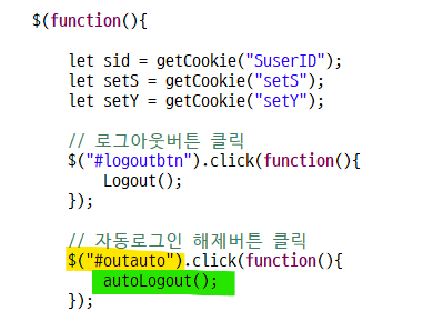 (자동로그인이 세팅된 상태에서 _ 즉 쿠키에 SuserID 와 setS (='S') 가 저장되어 있을때 )
